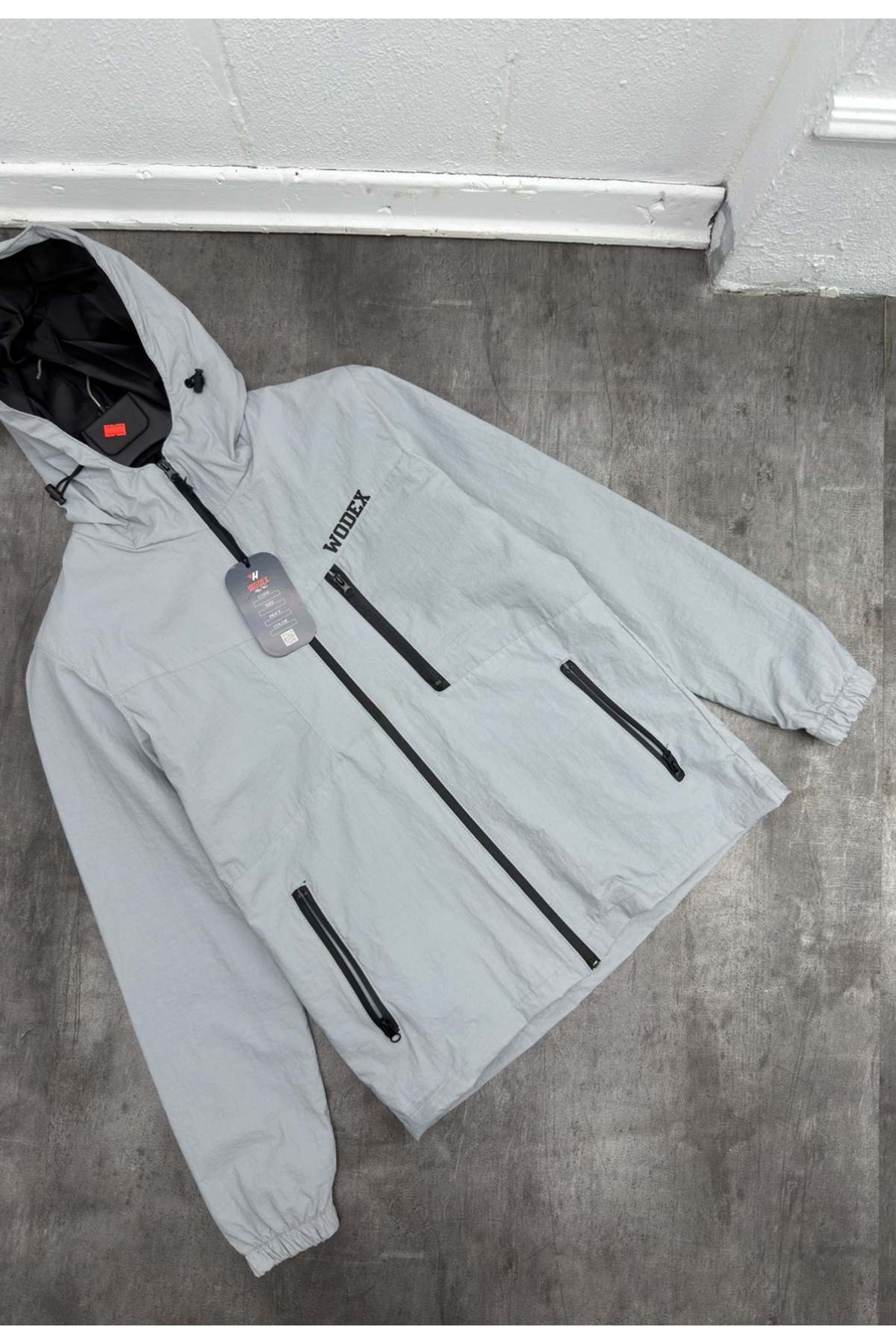 1003 WODEX YAZI DETAY YAĞMURLUK - GRİ - S