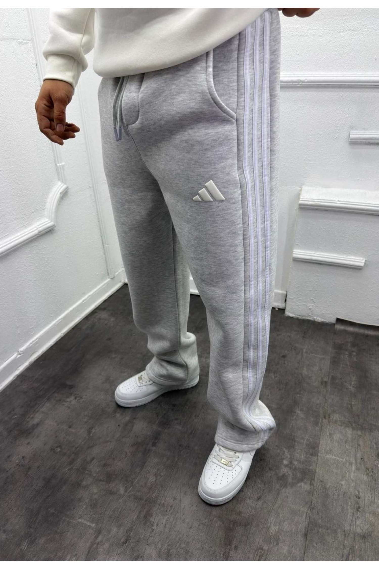 1010 ADİDAS ŞERİTLİ EŞOFMAN - AÇIK GRİ