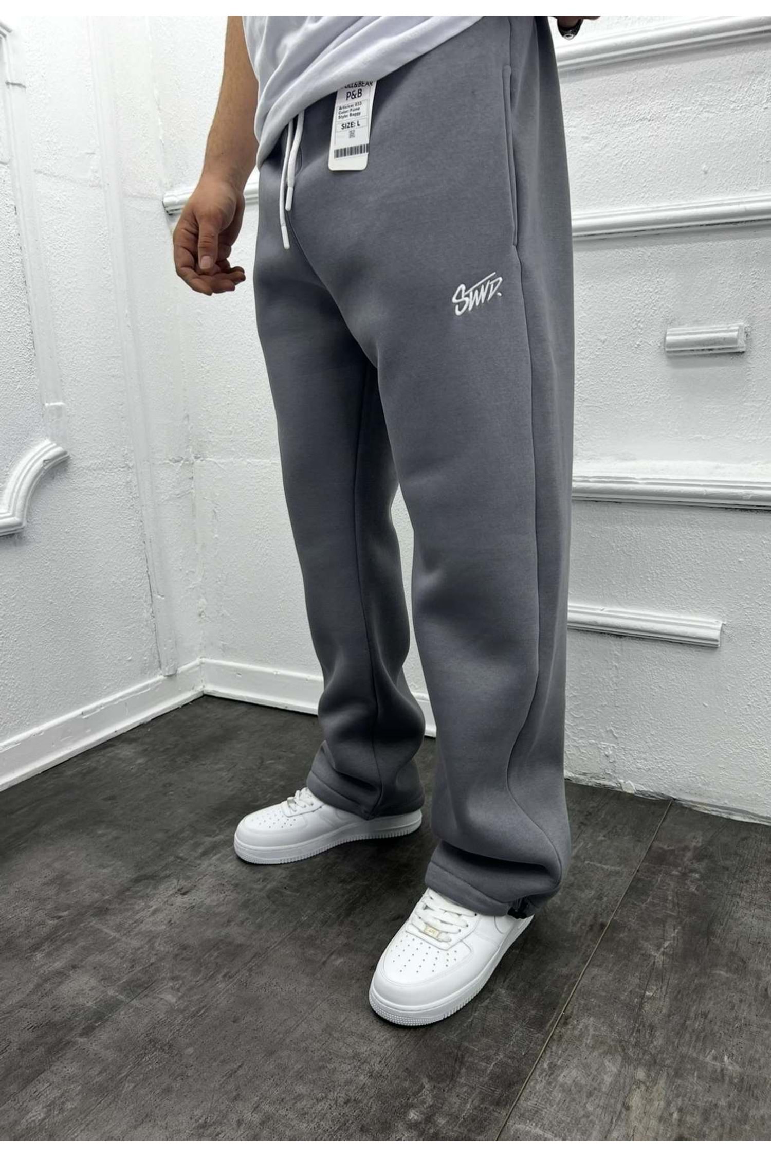 1018 STWD NAKIŞ LOGO BAGGY EŞOFMAN - BOYALI GRİ