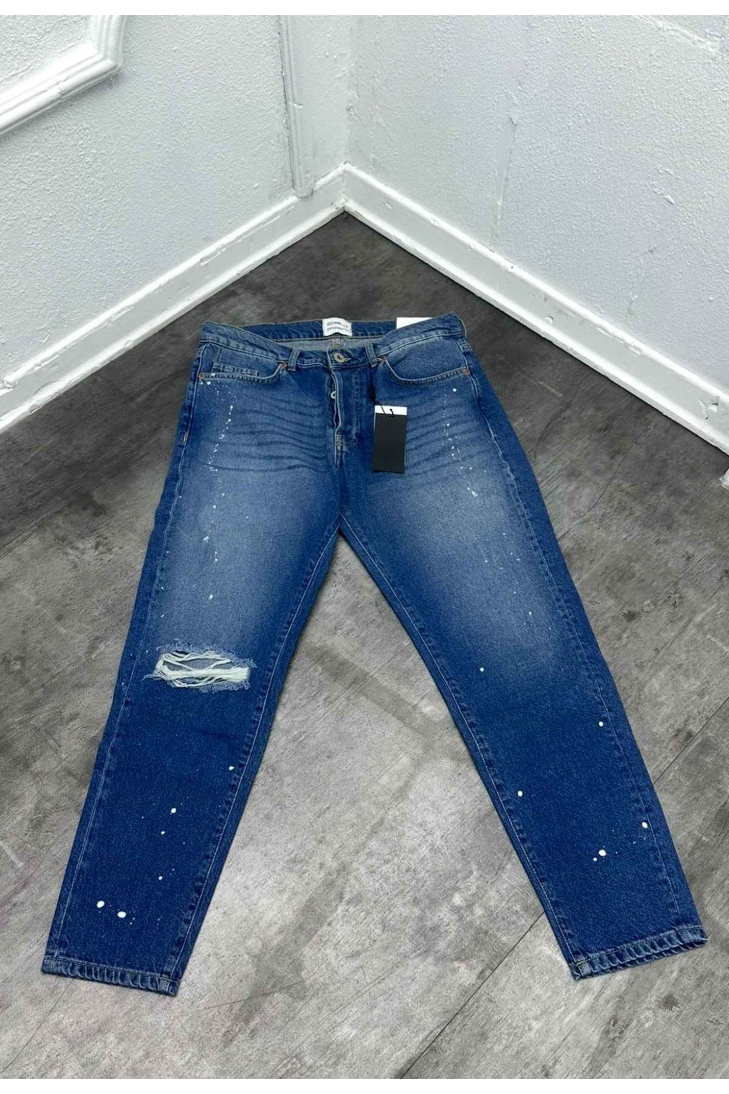 BÜYÜK YIRTIK VE BOYA DESEN DETAY TAŞLAMA BOYFREND KOT