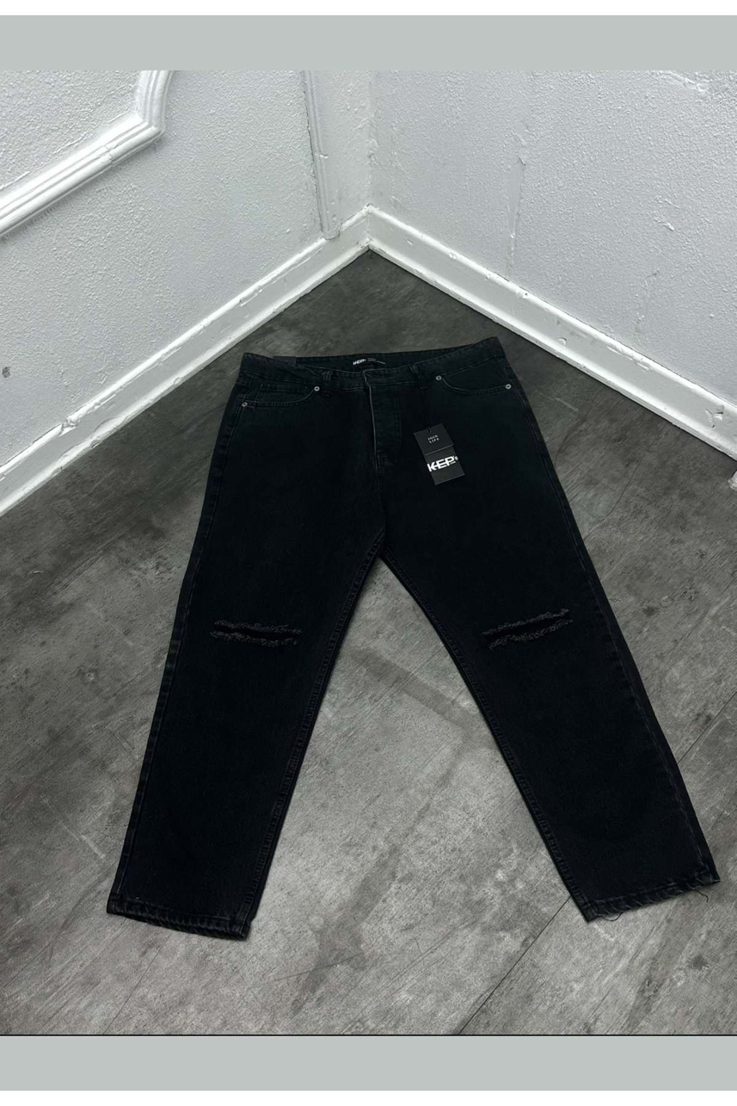 1012 KEPS DİZİ YIRTIK BOYFRİEND KOT - KOYU FÜME